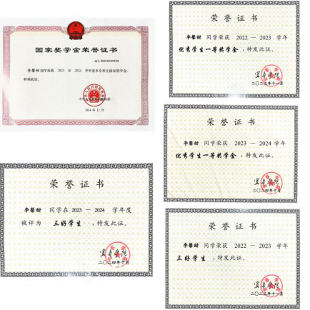 作为英语师范专业学生,李馨甜将 “学高为师” 铭记于心,学习态度严谨,课堂专注互动,学业成绩常年稳居前列,连续两年获校级一等奖学金,多次获评 “三好学生”,成为同学中的学习榜样。