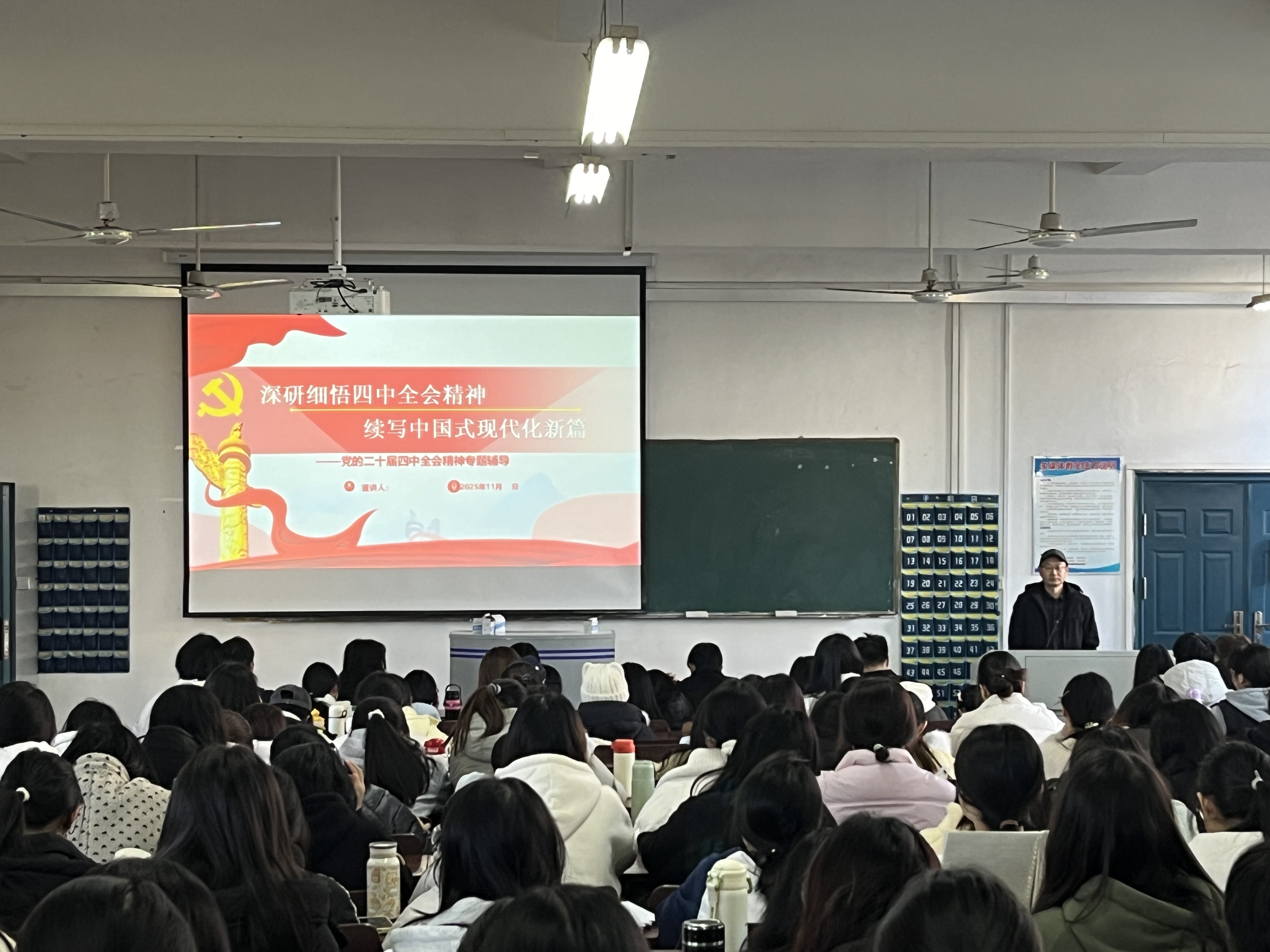 11月26日,校党委委员、院党委书记和副书记等作为校宣讲成员,以讲授《形势与政策》课为契机,深入课堂面向我院2024级和2025级全体学生宣讲全会精神。