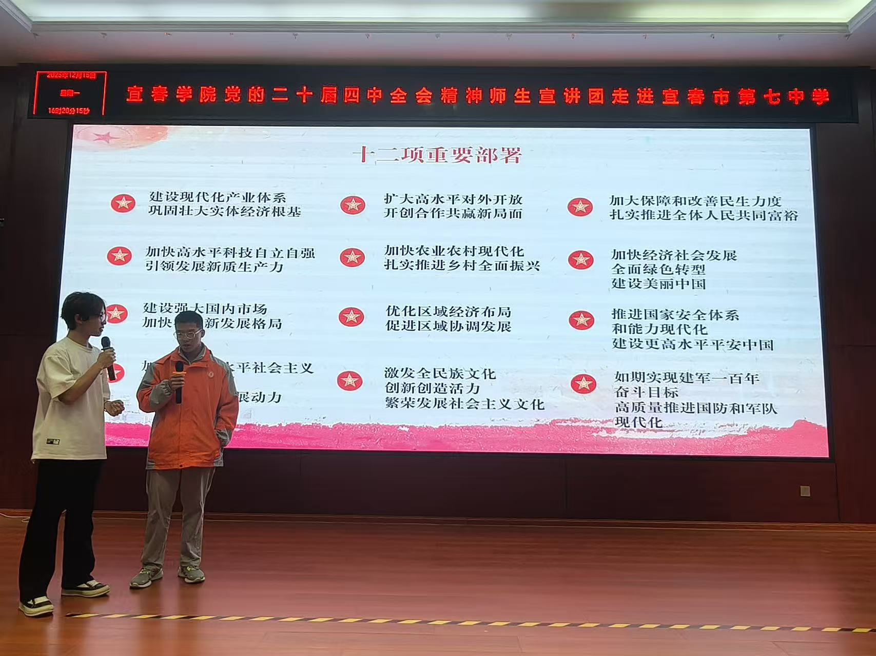 为深入学习贯彻党的二十届四中全会精神,推动党的创新理论生动鲜活地融入校园、浸润童心,我校师生宣讲团正式启动面向中小学的系列宣讲活动。近日,宣讲团先后走进包括袁河小学、宜春市第九小学、宜春市第七中学等在内的多所校园,计划共为六所中小学带去别开生面的理论启蒙课。在此系列活动中,我院师生发挥专业所长,担当宣讲团主力,以独特视角与亲和形式架起理论传播的桥梁。