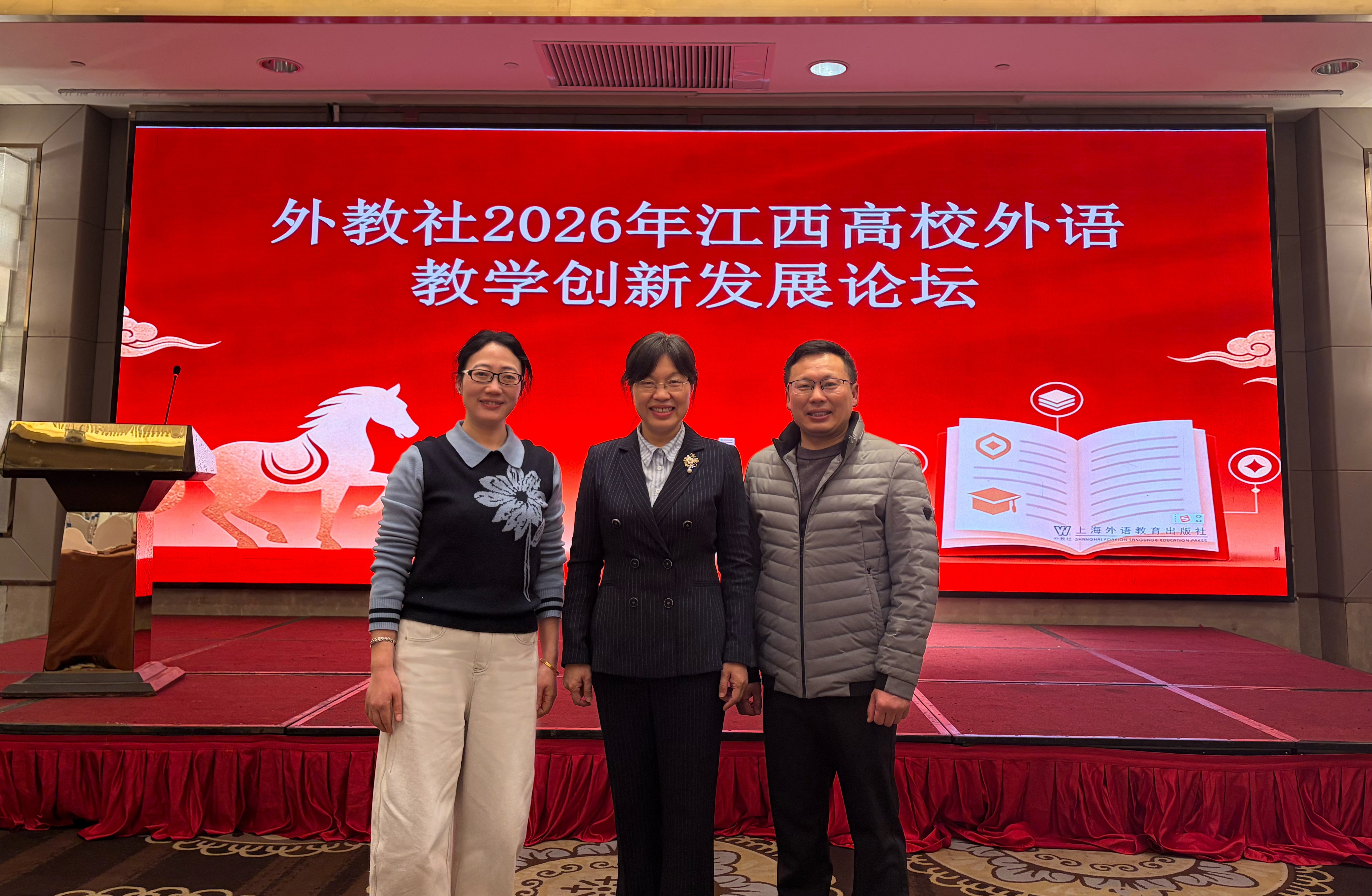 2026年1月25日,由上海外语教育出版社主办的“2026年江西省高校外语教学创新发展论坛”在南昌举办。省内外150余名专家学者与会,共探数智时代外语教育发展新路径。我院院长高芸教授受邀出席论坛,并作专题分享。副院长袁翔华、刘兵飞一同参会。