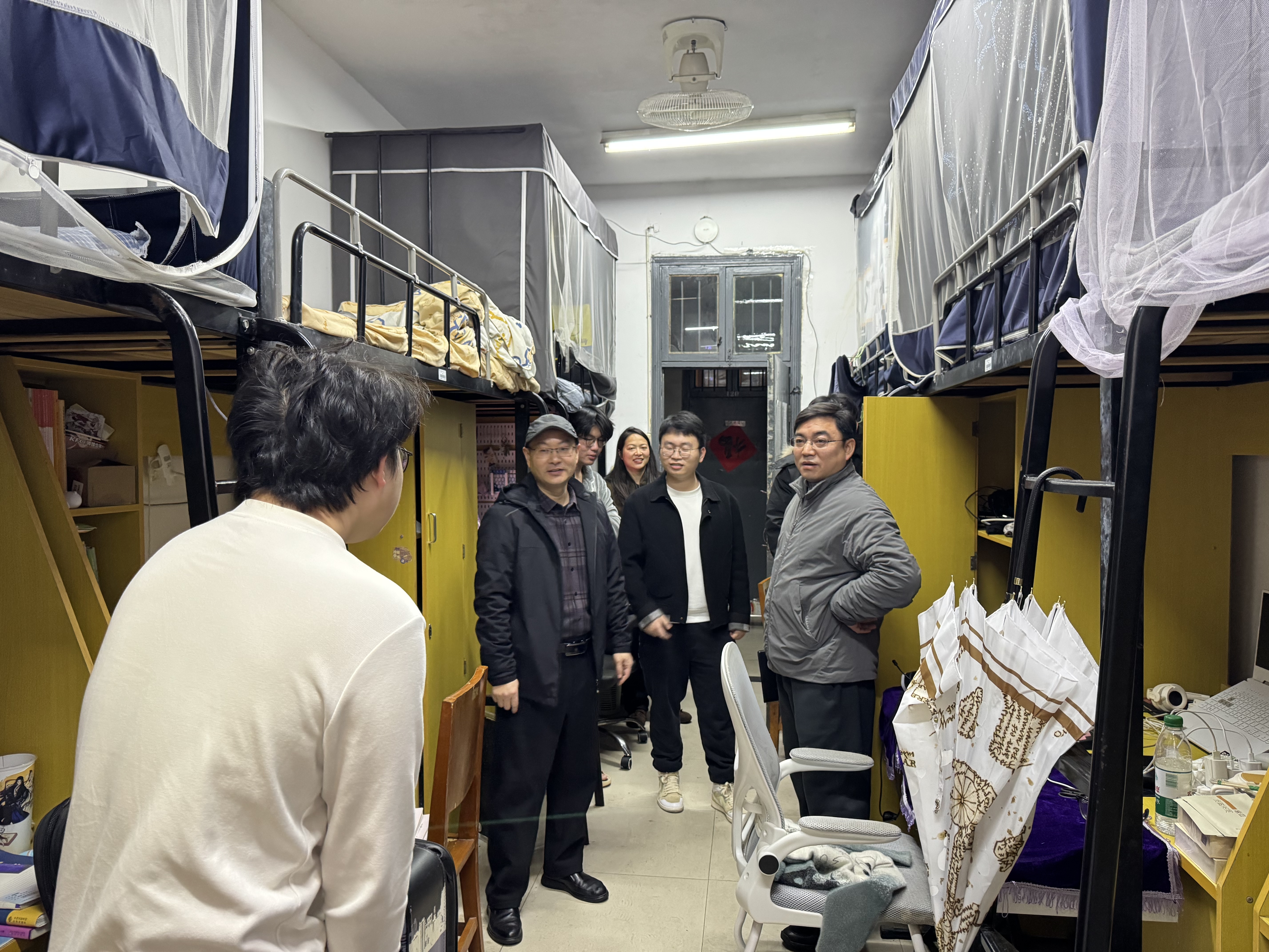 冬意尚存,新学期如期启幕。为深入了解同学们返校后的学习与生活状况,助力大家迅速调整状态、融入校园节奏,3月4日,外国语学院党委书记伍忠,党委副书记陈建新,和专职辅导员一行深入学生宿舍开展新学期走访慰问活动,为同学们带去学院的关心与温暖。
