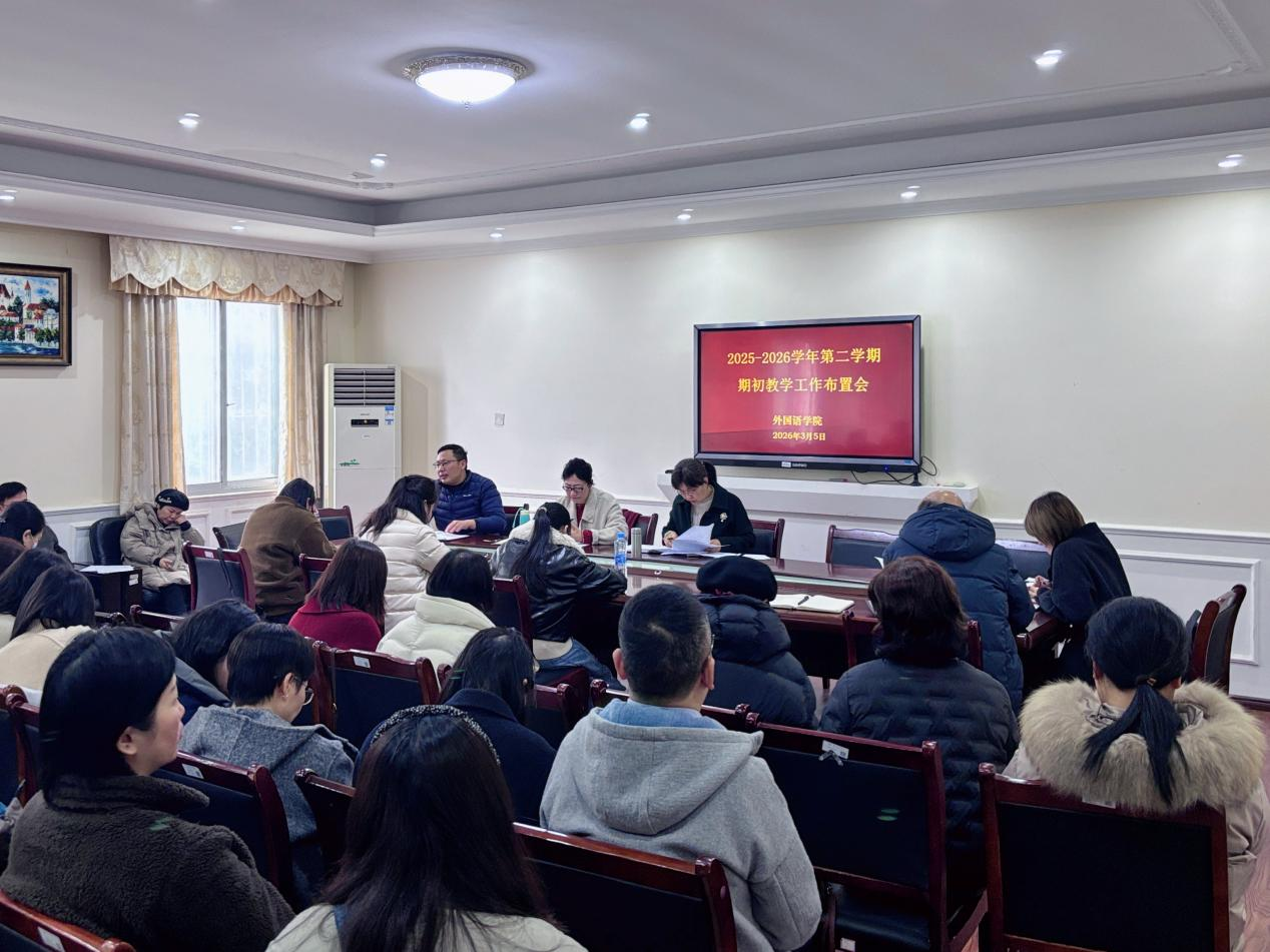 为确保新学期教学工作平稳有序开展,3月5日上午,我院在人文楼S208 会议室召开2025-2026学年春季学期期初教学工作布置会。会议由院长高芸主持,全体院领导及全院教职工参会。