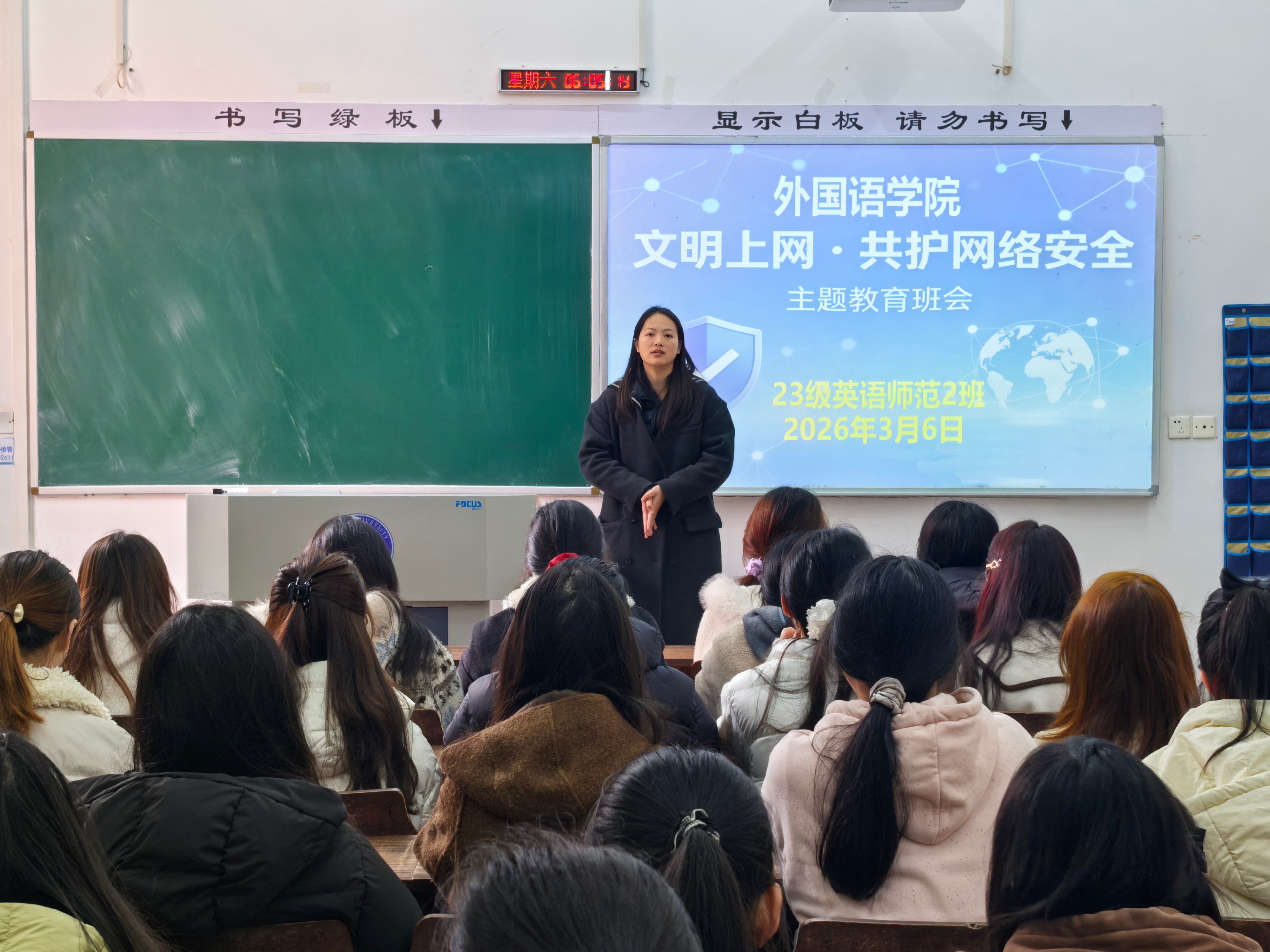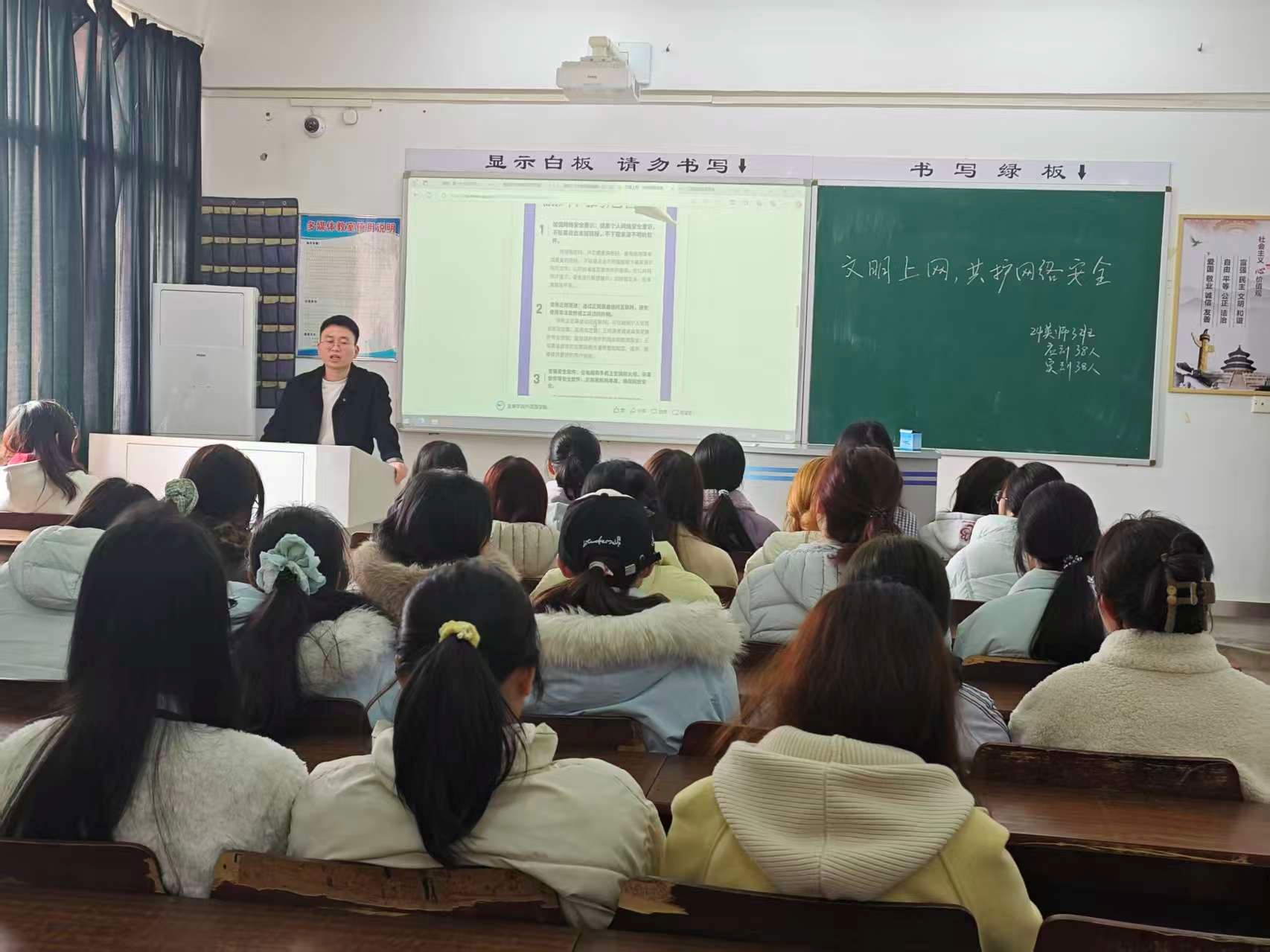 为扎实做好新学期学生教育管理工作,引导学生以崭新姿态投入学习生活,3月6日,我院精心组织各班级开展“开学第一课”主题班会。本次活动紧密结合安全教育,以“规范网络行为守护青春防线”主题,并邀请第二班主任深入班级参与活动。