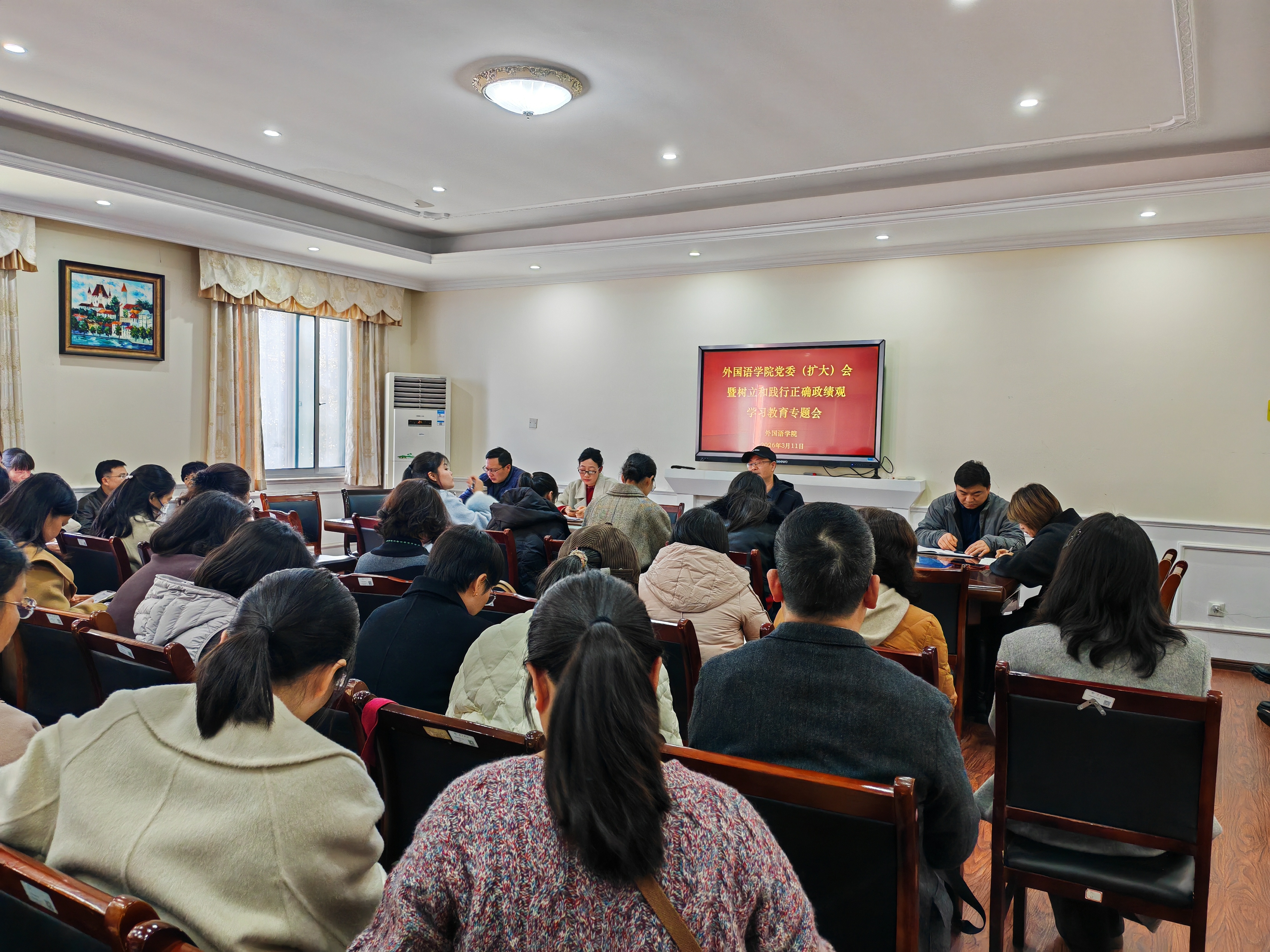 为深入学习贯彻习近平总书记关于树立和践行正确政绩观重要论述,全面落实中央、省委、市委及校党委工作部署要求,3月11日,我院召开党委(扩大)会暨树立和践行正确政绩观学习教育专题会,部署学习教育各项工作。会议由院党委书记伍忠主持,全体党员参加会议。