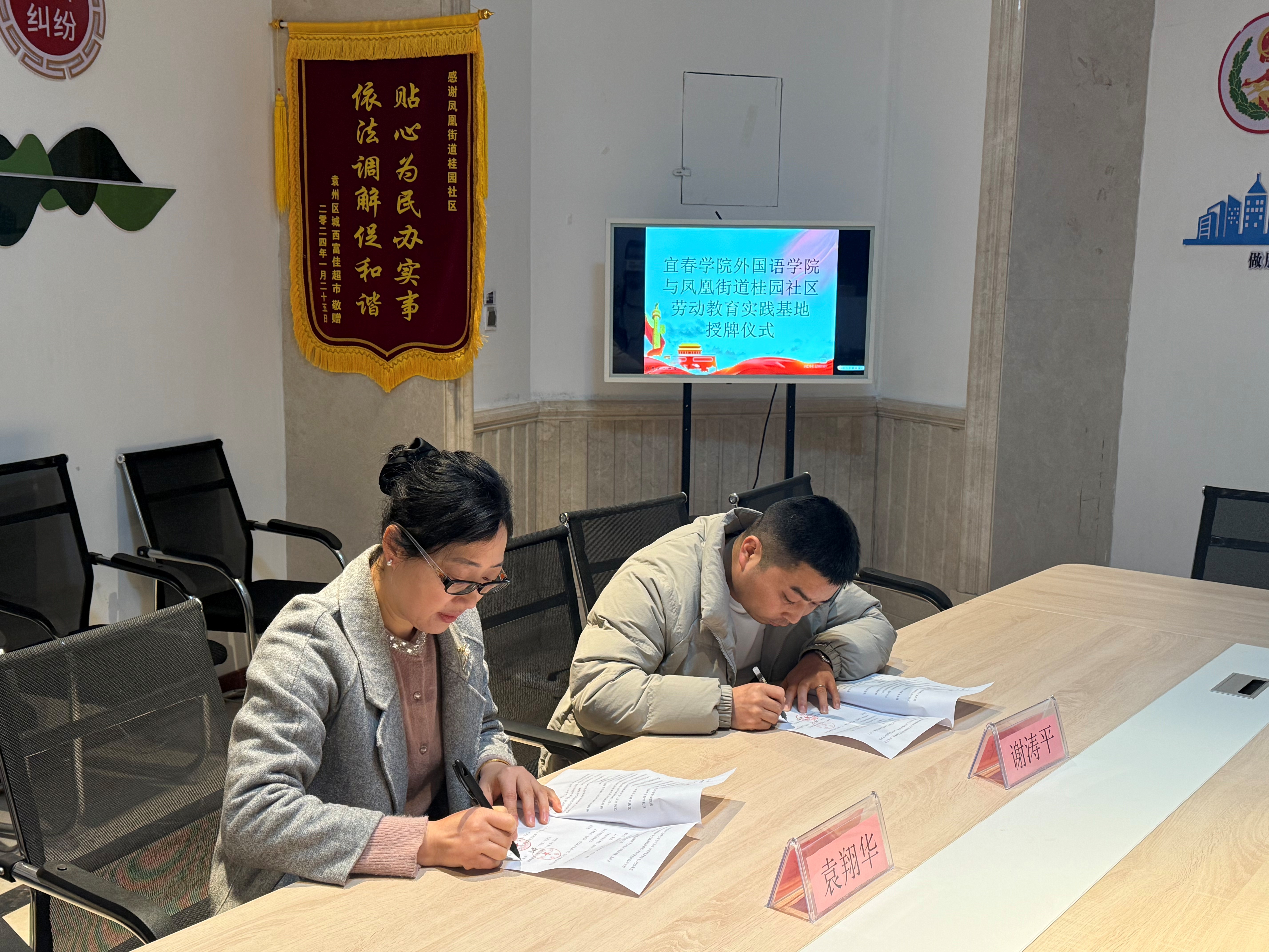 为进一步深化校地合作,拓展大学生劳动教育实践平台,3月10日上午,外国语学院与宜春市袁州区凤凰街道桂园社区共同举行劳动教育实践基地授牌仪式。此次活动标志着双方正式建立合作关系,共同探索新时期劳动教育新模式。