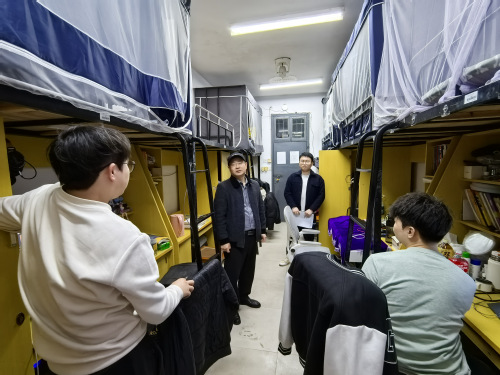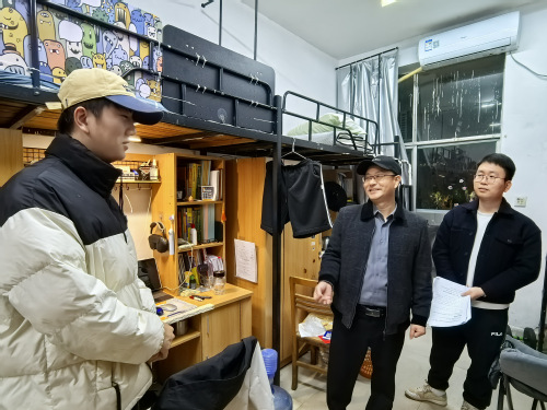 为深入了解毕业班学生思想动态,切实解决学生实际困难,助力学子以最佳状态迎接专业等级考试及毕业季,3月18日晚,外国语学院党委书记伍忠带队,学院党委副书记陈建新,学生工作办公室主任谌琪,全体毕业班辅导员(班主任)深入学生寝室,开展走访慰问。