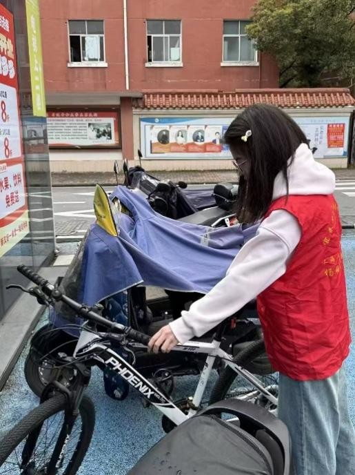 同一天,“停见文明,开出风采”车辆停放引导志愿服务活动在一食堂西门及周边区域展开。四名志愿者在午间和傍晚两个车流、人流密集时段,耐心提醒过往同学减速慢行、注意避让,同时引导车辆规范停放,主动将歪斜或挡道的车辆摆放归位,确保道路畅通、环境整洁。