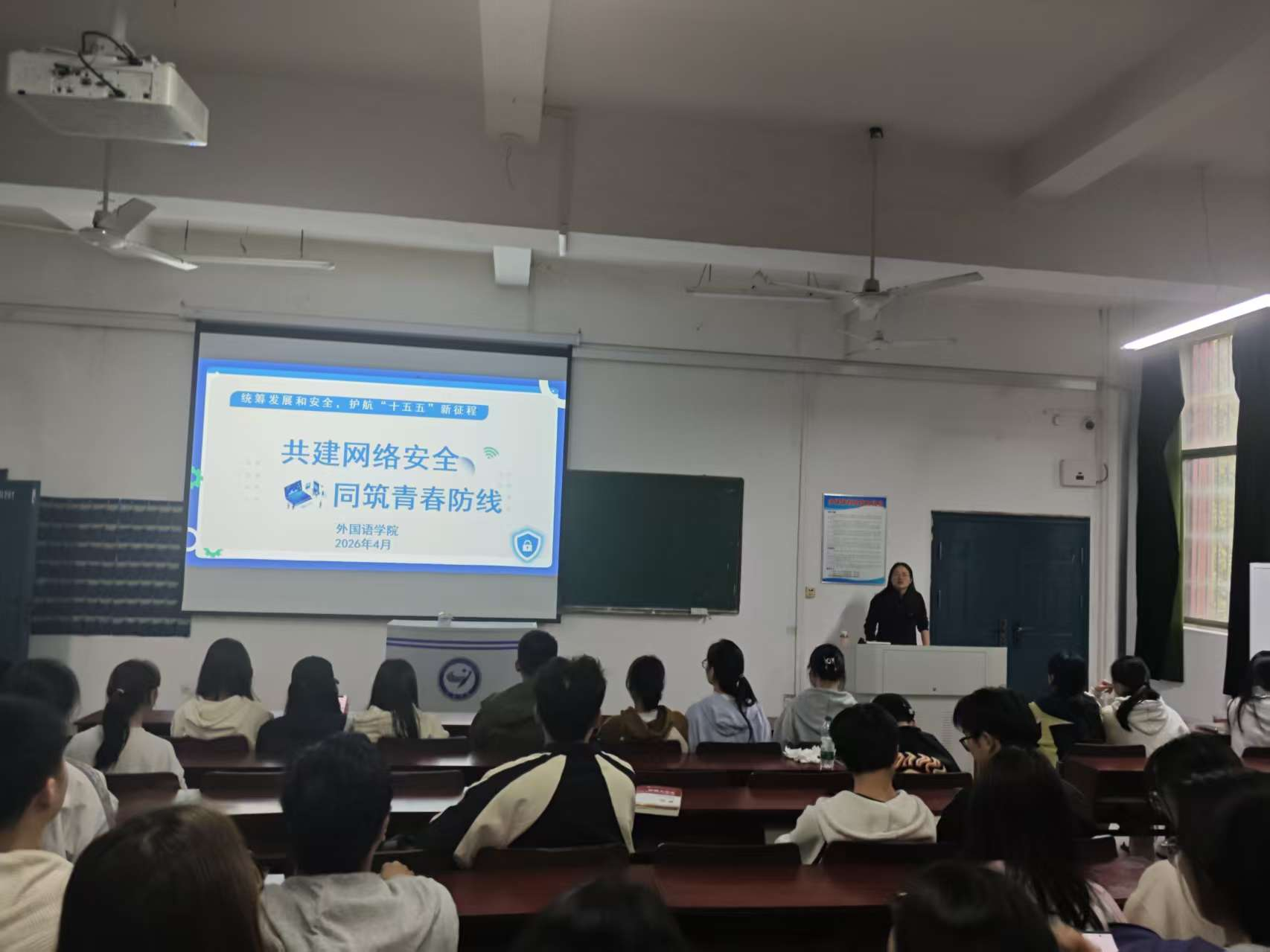 宣讲结束后,两位学生代表分享了学习体会。25级英师2班的杨同学表示:“以前觉得国家安全离自己很远,听完才发现,一条陌生链接、一个免费Wi-Fi都可能带来风险。今后我会更加注意保护个人信息,也会主动提醒身边同学。”法语班的袁同学说:“作为外语专业学生,平时接触各类信息较多,更要保持警惕,不随意转发不明来源的内容,做网络安全的践行者和国家安全的宣传者。