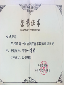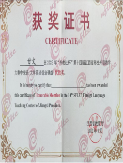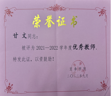 甘文,女,中共党员,宜春学院外国语学院专任教师。自踏上讲台,“培养具有国际视野与人文情怀的新时代人才”便成为甘文老师矢志不渝的使命。曾多次获得优秀共产党员、优秀教师等荣誉称号。