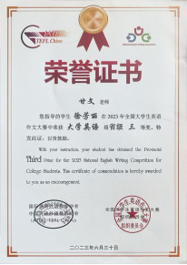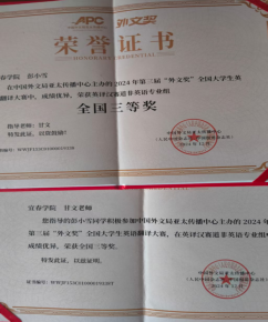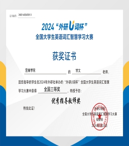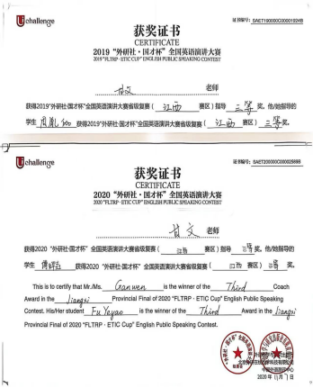 无论赛事规模大小,只要学生满怀热忱,她总会给予最坚实的支持,做到有问必答、有惑必解。在她看来,“以赛促学” 的真正价值,在于点燃学生自主成长的内驱力,让英语真正蜕变为拓展国际视野的工具、融入生活的实用技能。正是这份坚守,让她的学生在省级及以上赛事中累计斩获 20 余人次的佳绩。
