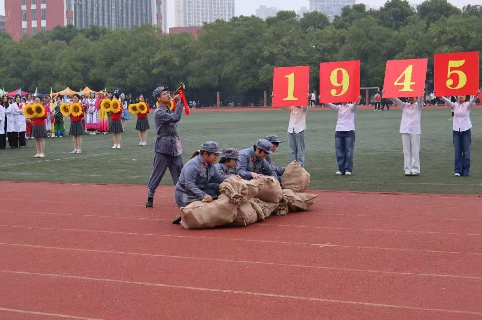 2025年11月5日上午,宜春学院田径场彩旗飘扬、乐声激昂,运动会开幕式在此盛大举行。外国语学院方阵以抗战胜利80周年为主题的创新呈现,将外语学子的青春朝气与家国情怀深度融合,在开幕式上留下浓墨重彩的一笔。
