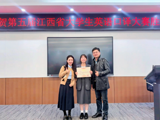 (外国语学院 曾楚弦供稿)2025年11月8日,第五届江西省大学生英语口译大赛在南昌大学前湖校区成功举办。我院 2023 级翻译2班学生彭思奕凭借扎实的语言功底与出色的临场表现,在全省十五所高校50名本科生、研究生选手的同台竞技中脱颖而出,成功晋级决赛,最终斩获全省二等奖。
