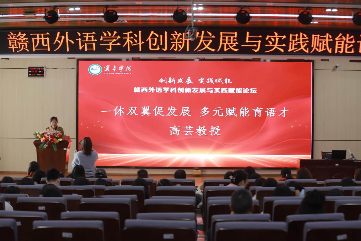 12月19日,由宜春学院外国语学院主办、上海外语教育出版社协办的“赣西外语学科创新发展与实践赋能论坛”在宜春学院实验实训楼一楼报告厅举行。