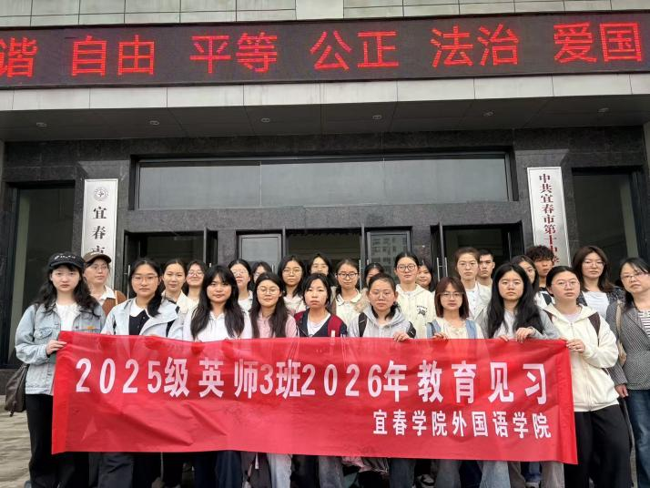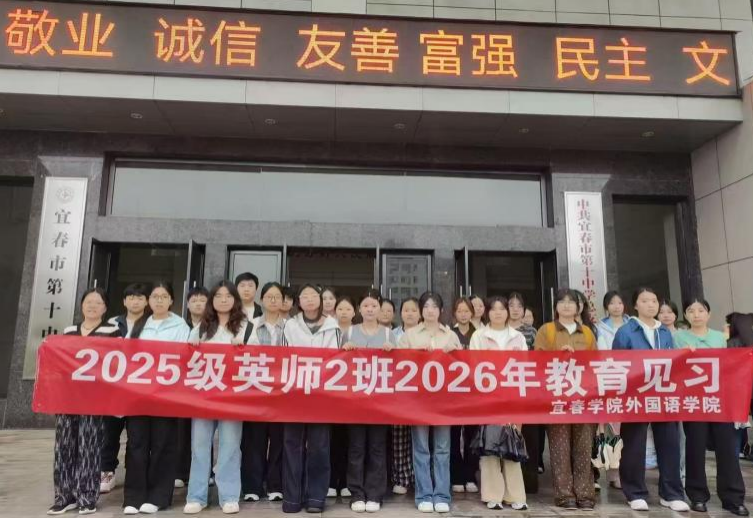 为深化师范专业人才培养,提升英语师范生教学实践能力,搭建高校与基础教育协同育人桥梁,4月13日,2025级英语1-3班全体学生根据学院学院安排前往宜春市第十中学开展2026年春季教育见习活动。