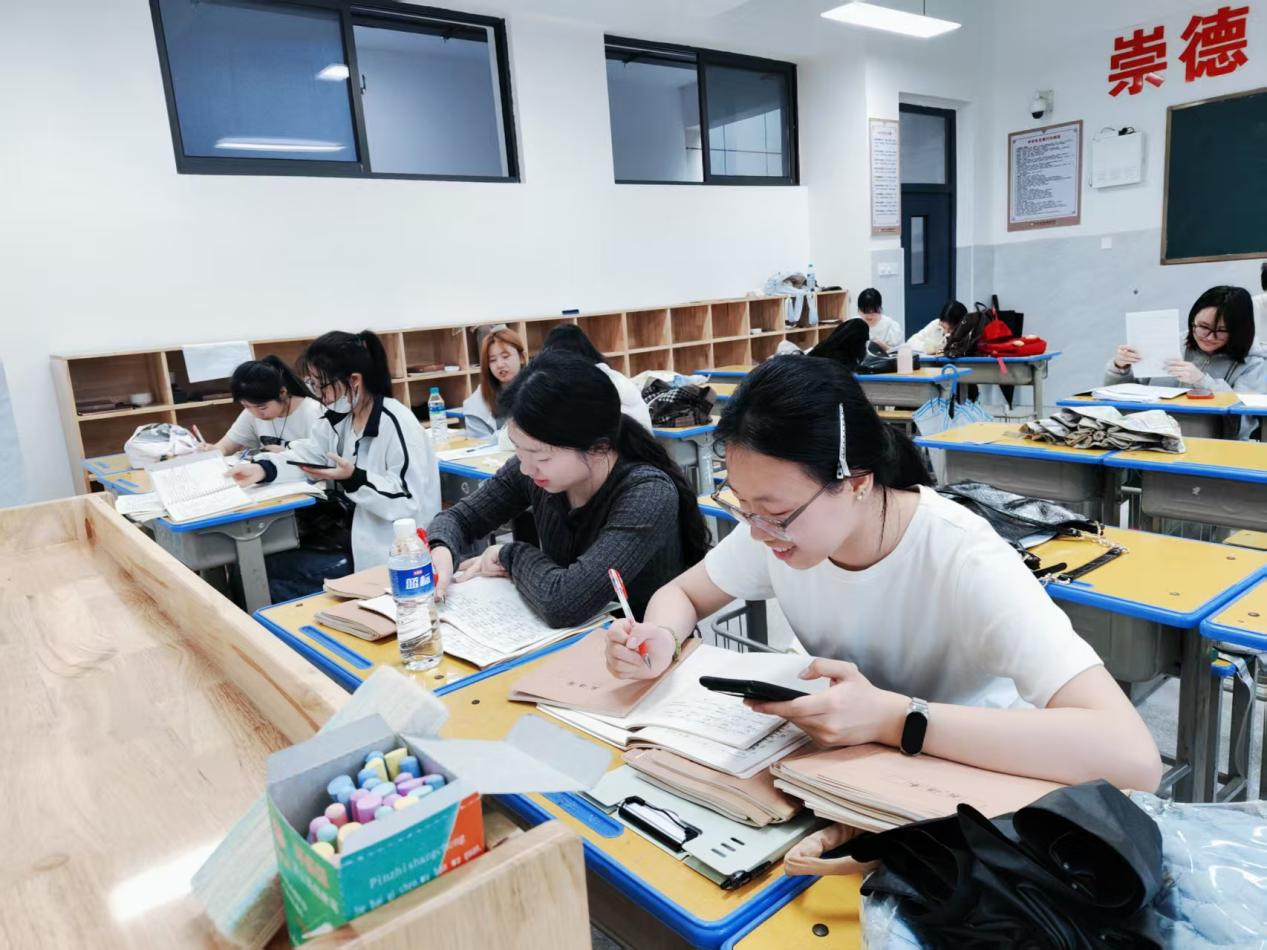 课前,同学们主动协助授课老师完成各项课前准备,以实际行动践行教育初心。大家分工协作,逐一批改学生听写作业与课堂练习题,不仅核对答案、标注错题,还细致归纳班级高频错误点与知识薄弱环节;同时提前整理听写答题卡、练习卷,按学号分类归档,协助老师准备课堂教具与教学资料,为课堂高效开展做好后勤保障。这一过程让同学们近距离体验中学英语教学日常细节,深刻体会到“细节决定教学质量”的内涵,也对学生知识掌握情况有了更直观全面的认知,为后续精准观察课堂、理解教学重难点积累了宝贵经验。