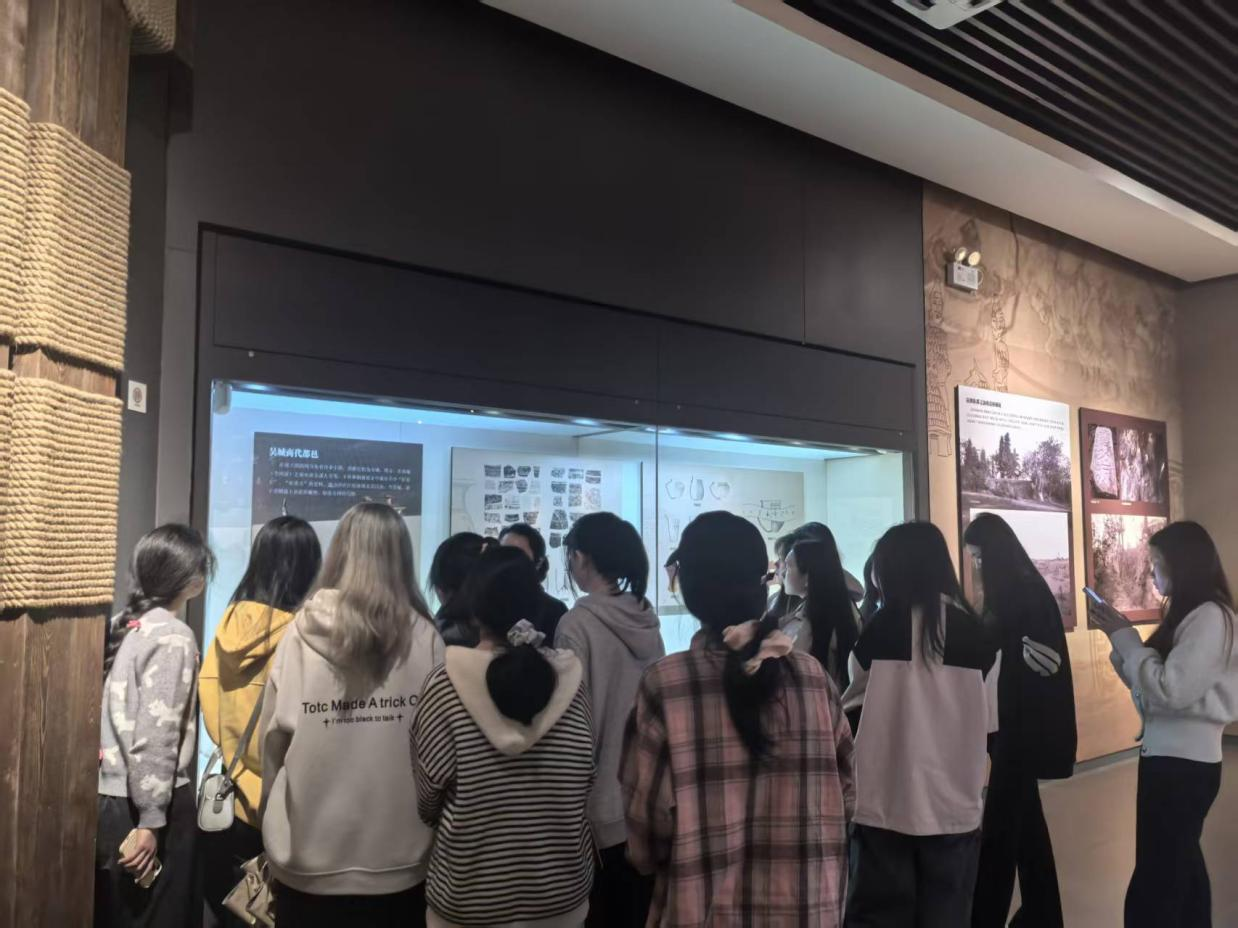 带队教师结合展厅展品,现场为学生讲解了博物馆公示语的翻译规范,以及跨文化传播中语言转换的注意事项,指导学生将课堂所学的翻译理论与地方文化传播实践相结合。