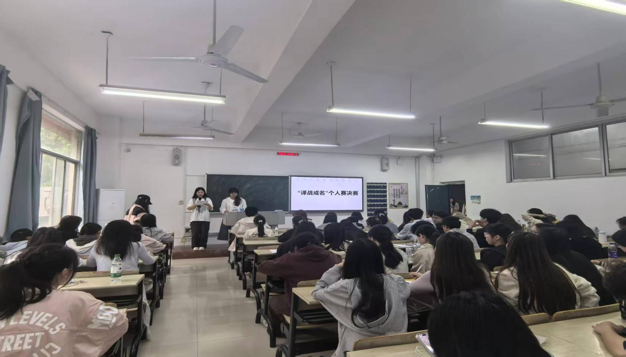 为贯彻外国语学院实践周“以赛促学、以练促能”的育人宗旨,巩固学生翻译专业技能,2024级翻译班实践周特别赛事“译战成名”个人及团体项目决赛截至4月17日圆满结束。2024级翻译班全体学生汇聚赛场,共同观摩了这场翻译专业学生之间的学业竞技。