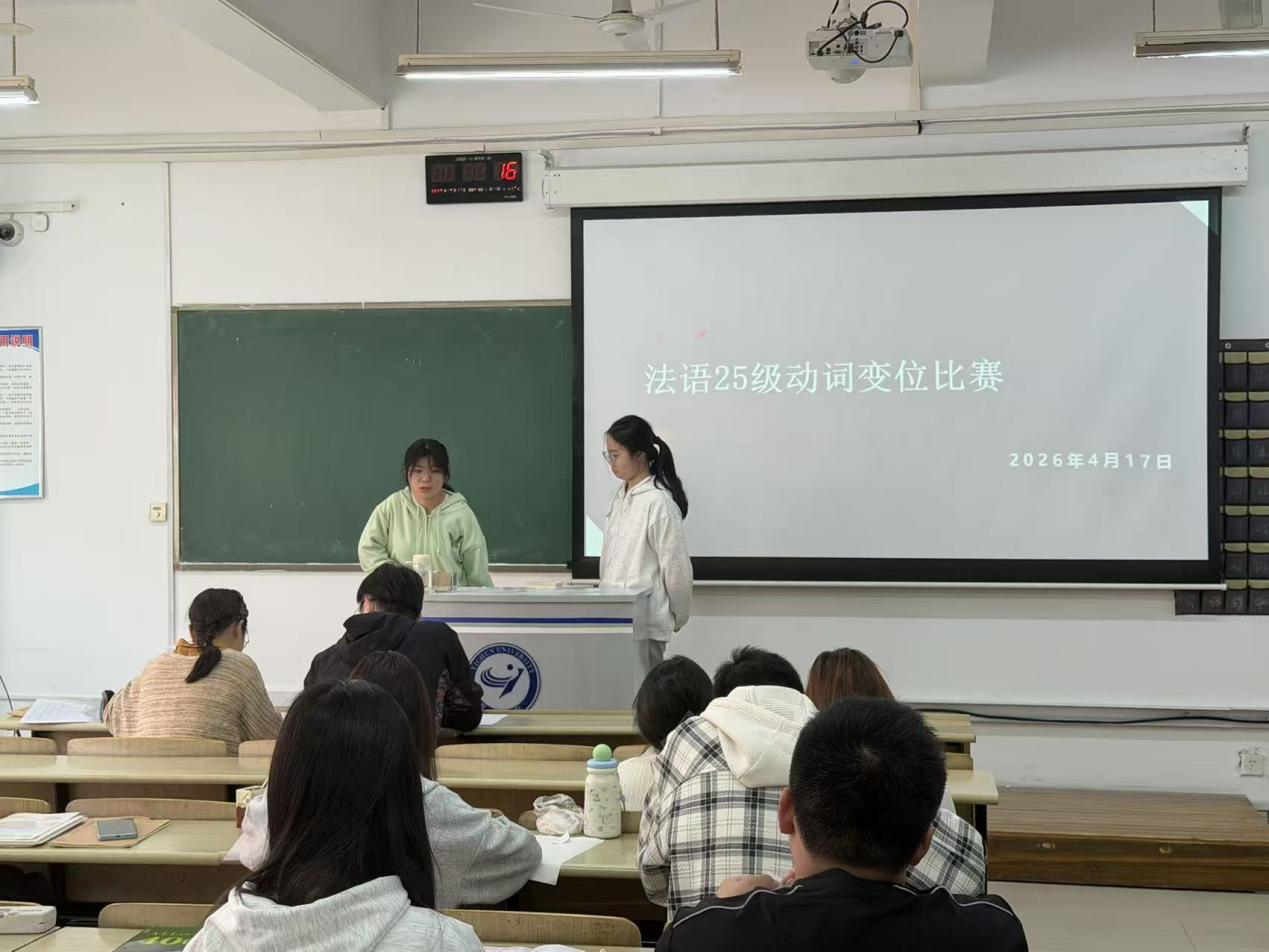 为巩固法语专业学生的语言基础,营造以竞赛促进学习的良好专业氛围,法语专业4月17日举办了实践周核心活动——法语动词变位决赛。比赛根据年级分设不同赛道,采取两两对决形式,并邀请法语专业教师担任评委。2023级、2024级及2025级全体法语专业学生到场观摩,现场气氛紧张而热烈。