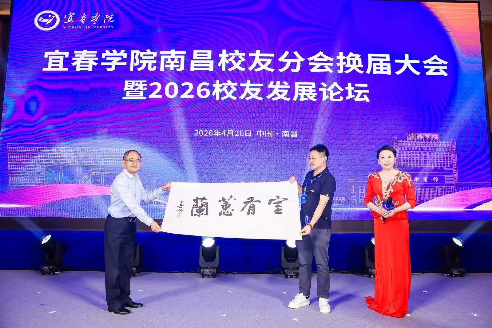 2026年4月26日,宜春学院南昌校友分会换届大会暨2026校友发展论坛在南昌举行,校党委书记李国金、校长蔡海生等校领导出席活动,来自各行各业的校友代表齐聚一堂,共叙母校情谊,共商发展大计。外国语学院借此契机,深度参与大会各个环节,主动与南昌地区校友代表沟通交流,积极推介学院发展成果与育人特色,进一步拓展校友资源渠道。